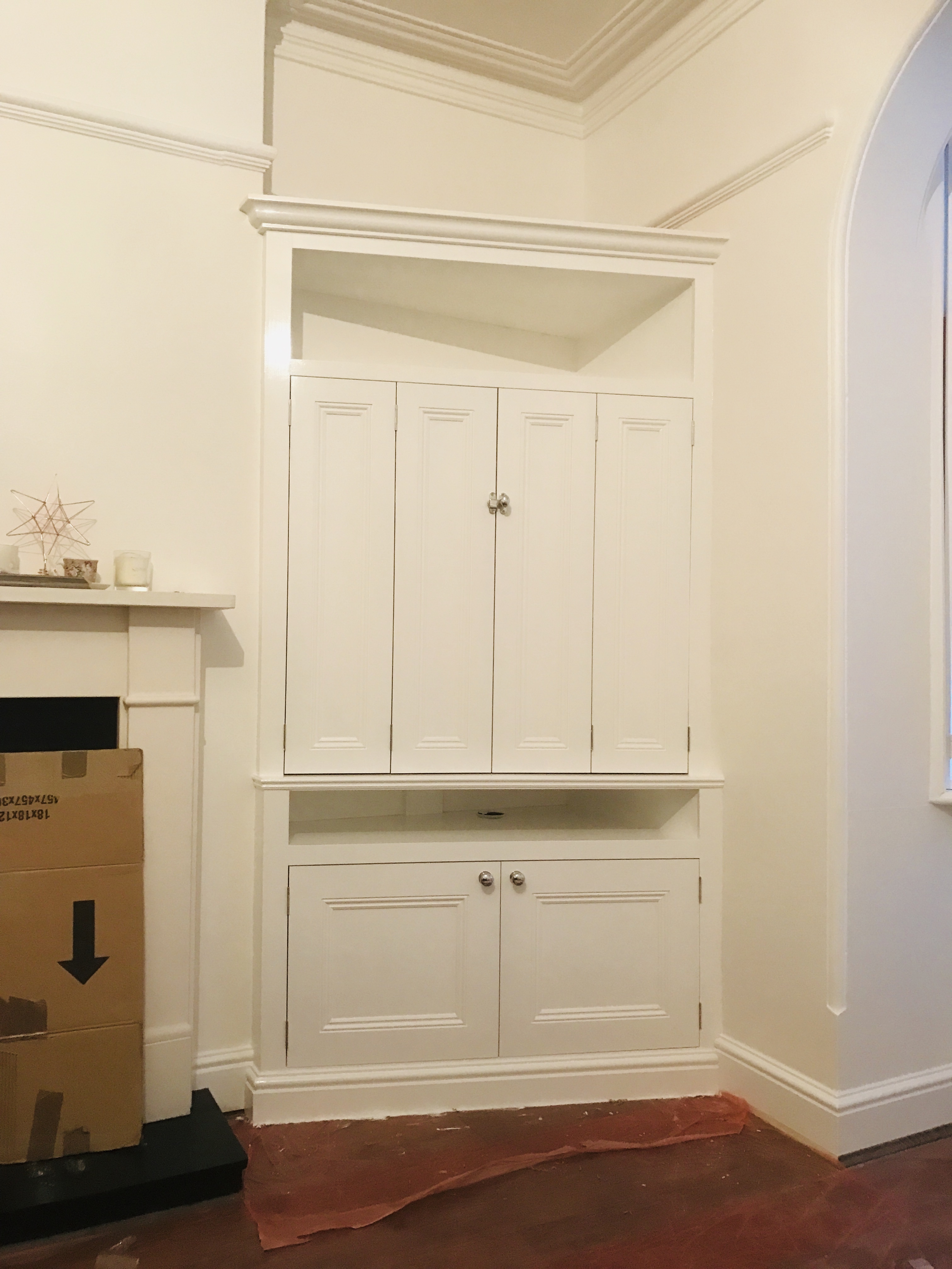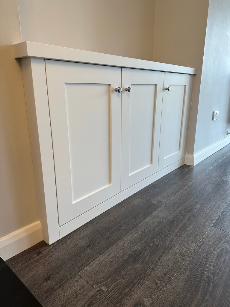 Our alcove cabinets are fully bespoke and made to fit your alcove which means unlike other high street brands that use standard size panels/doors and infill the space left over.