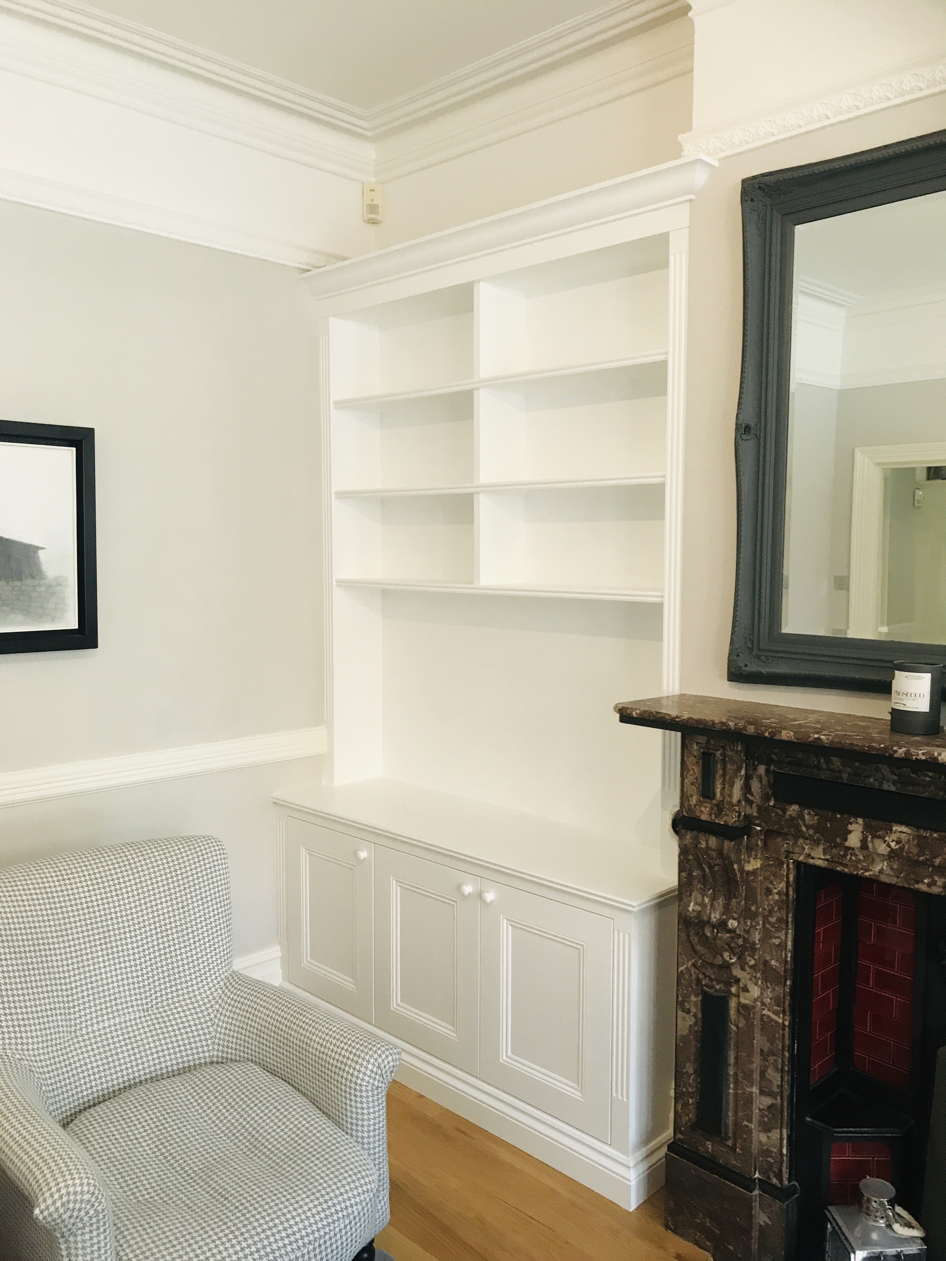 We design, make and install bespoke alcove cabinets to suit your home.